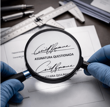 Quando surge a suspeita de assinatura falsa, a análise técnica se torna indispensável para garantir segurança jurídica e evitar decisões baseadas em documentos inválidos.